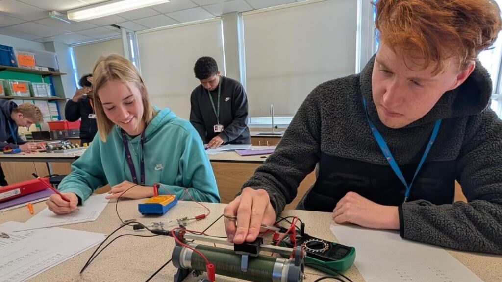 Last week, our Y12 Physics students completed one of their first practical assessments, investigating the electrical characteristics of filament lamps, resistors and LEDs. Prior to the assessment, students had been taught how to use multimeters as ammeters and voltmeters, as well as how to correctly connect a potentiometer into a circuit.