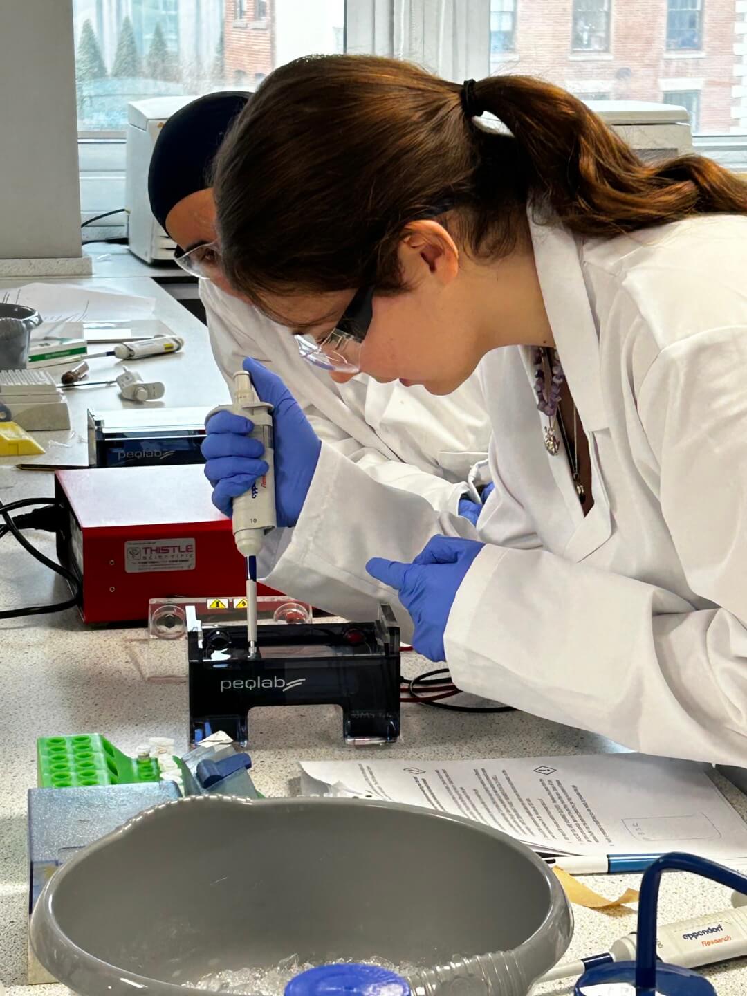 During the workshop, students carried out PCR and electrophoresis experiments to determine which donor kidney would be the best match for a patient. They also attended a university lecture, providing insight into university life and what studying at this level might involve.