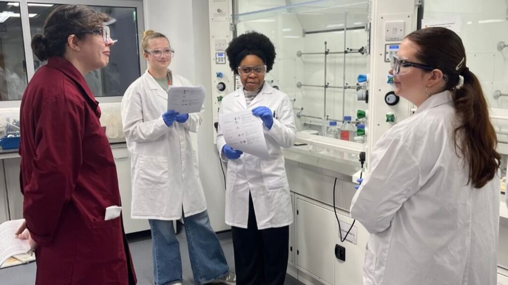 During the visit, students had the exciting opportunity to use university level laboratory equipment to synthesise aspirin. This included working with individual fume cupboards, house vacuum lines, and magnetic stirrer hot plates, which gave them a valuable insight into practical science at a higher level.